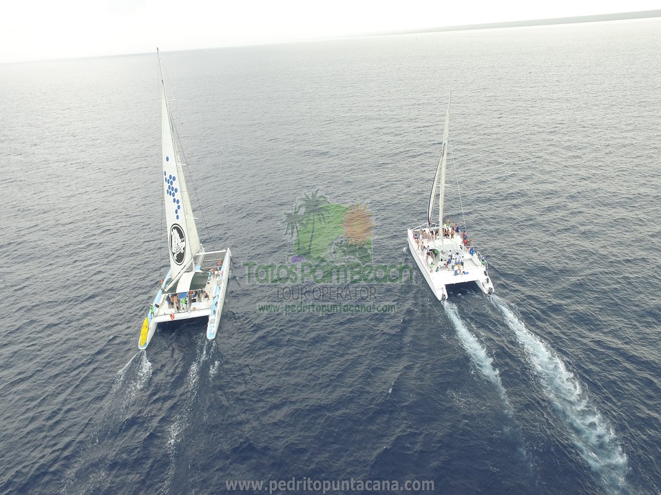 These are our two catamaran, in one of them we will make the journey back to the port of Bayahibe, they have an open bar, music, entertainment and a bow area for a quieter and more relaxed journey to the port of Bayahibe